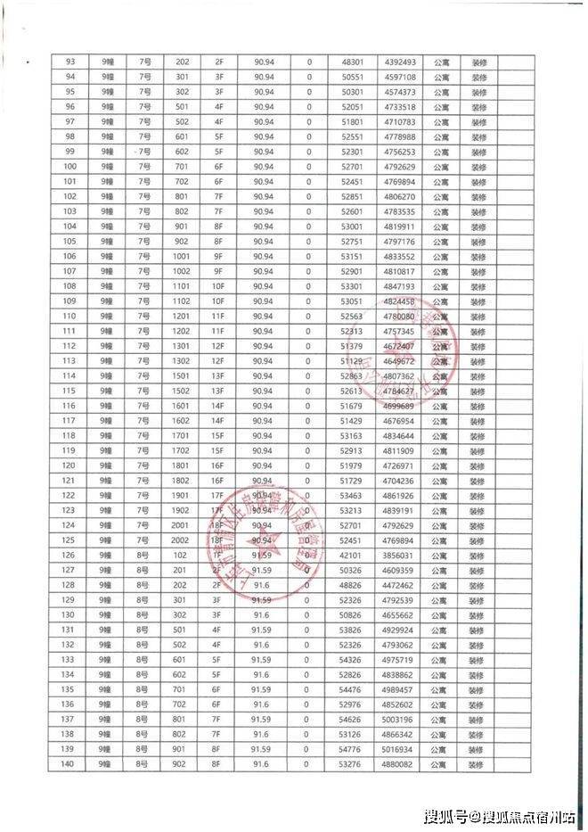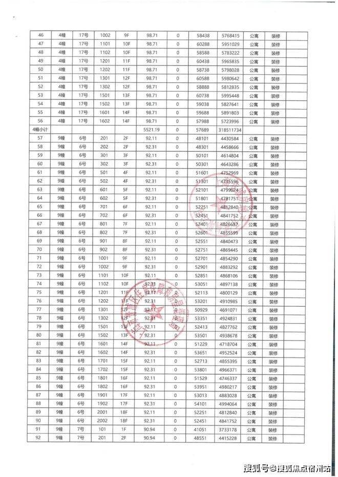 上期一房一价表