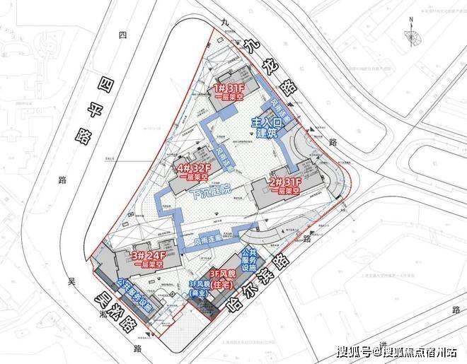 根据设计方案显示,项目拟建4幢24-31层高层住宅以及1幢总高3层的风貌建筑