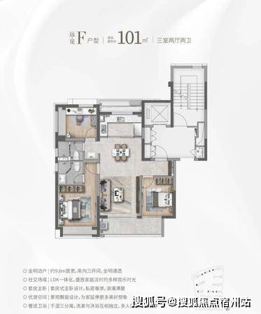 2. 建面约 101㎡三房两厅两卫 —— 明星户型,宽境舒居