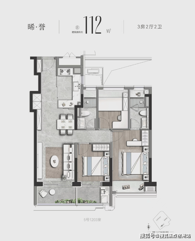 格局与112㎡相似,但尺度更奢阔: