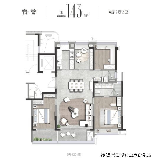预算充足的改善家庭,还可选择约143㎡4房户型。作为内环内稀缺的控总价4房,它在尺度与舒适度上颇为出彩:
