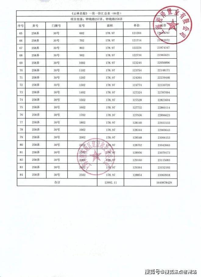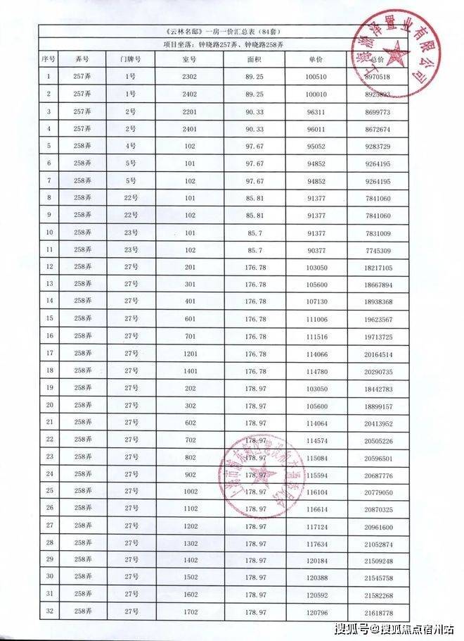 前期「一房一价表发布」