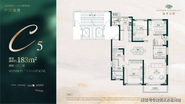 此户型最靠近苏州河,特地设计了270度转角阳台直面苏河一线景观!4个套房设计,尊崇感十足!此户型仅有6套,珍藏属性拉满!