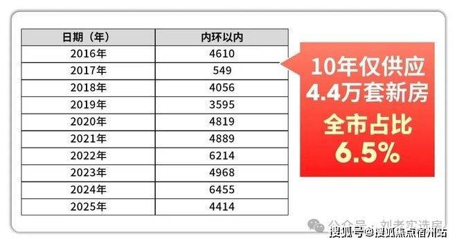 ②近10年,内环的新房供应占全市供应的约6.5%。