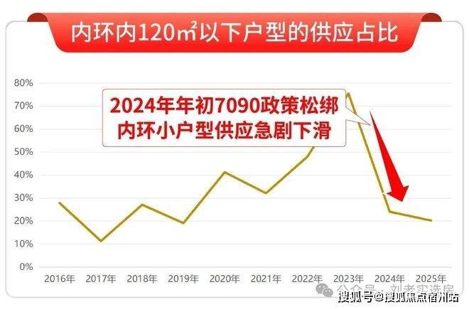 自2024年初7090政策调整后,内环新房的小户型供应迎来断崖式下滑,户型越做越大、总价越抬越高,早已成为市场常态: