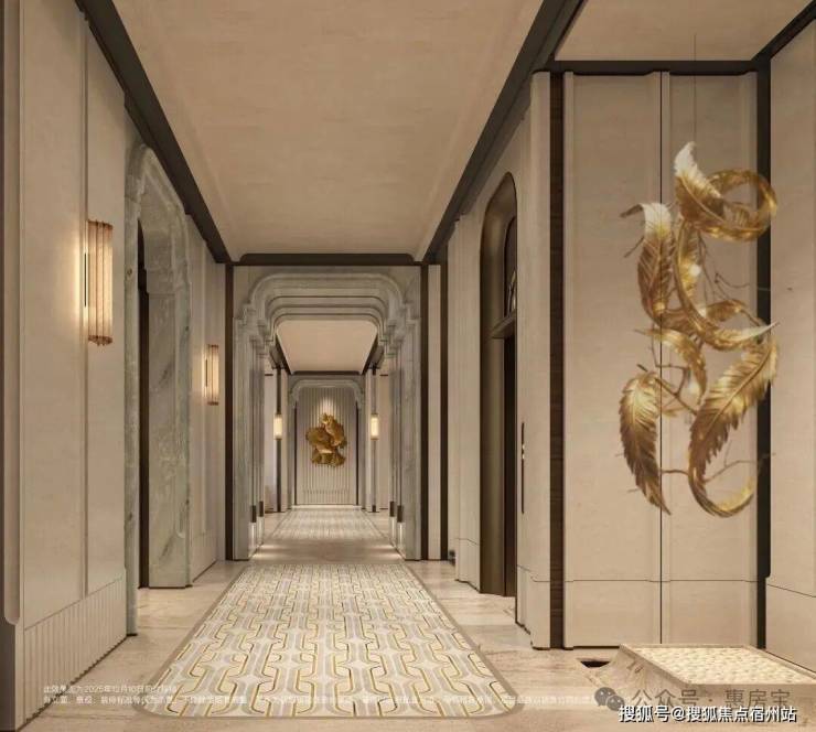 首先,项目西侧人行主入口大门,采用 经典的拱券序列符号 ,以浅色石材、咖色金属与玻璃的精致搭配,营造出复古奢华的归家仪式!
