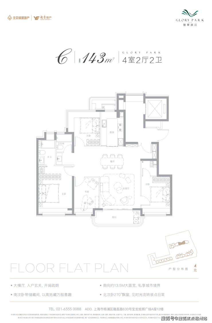除此之外,翎翠滨江还有建面约143㎡4房2.5卫产品: