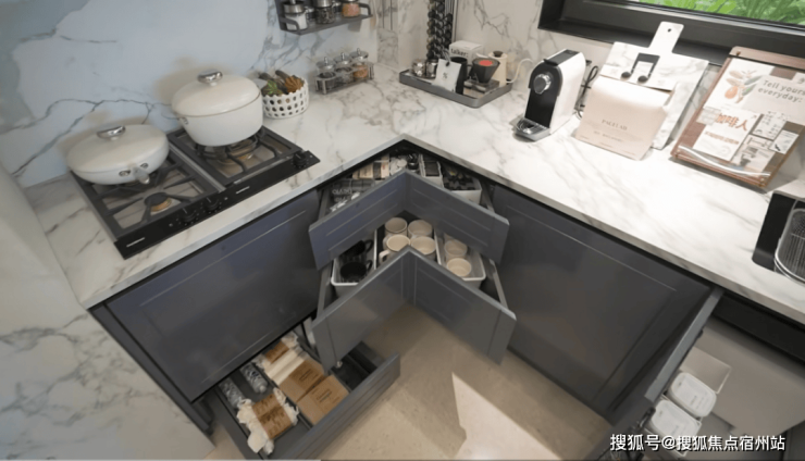 燕尾抽屉可有效利用台面下方转角空间;