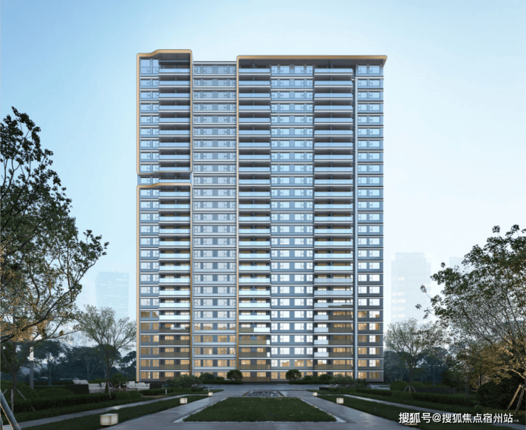 「保利海上瑧悦」建筑立面强调东方宅邸门堂的大气丛容,采用 大象灰石材搭配咖色系金属,以金镶玉为原型,提取其“曲”的形和白金配色应用到塔楼立面上,使建筑立面变得更为柔美,形成项目特色的立面效果,彰显项目的温和雅丽与尊贵典雅。