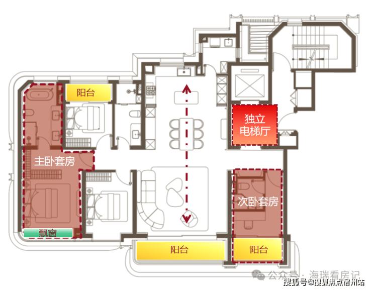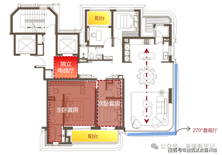 建面约220㎡户型位于5号楼楼王位置,这是一个非常出乎人意料的产品。