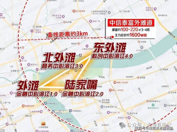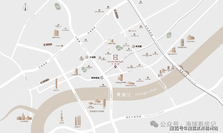 「中信泰富外滩道」地理位置相当优越!实属杨浦滨江板块内距离北外滩、外滩以及陆家嘴最近的新盘!