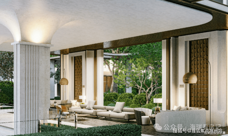 首先是归家仪式感打造上匠心十足!设计了南北2个酒店式归家入口,其中南侧入口结合保留风貌建筑,以风貌庭院式设计,以“穿过一道 100 年的风景,便回到了家宅”为主题,项目强调从城市街道到社区庭院,引领入户的诗意渐进体验,每日上演从历史文脉到私域心灵的诗意回归,惬意万分~