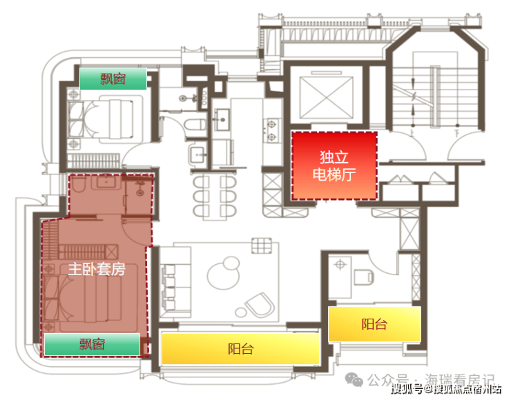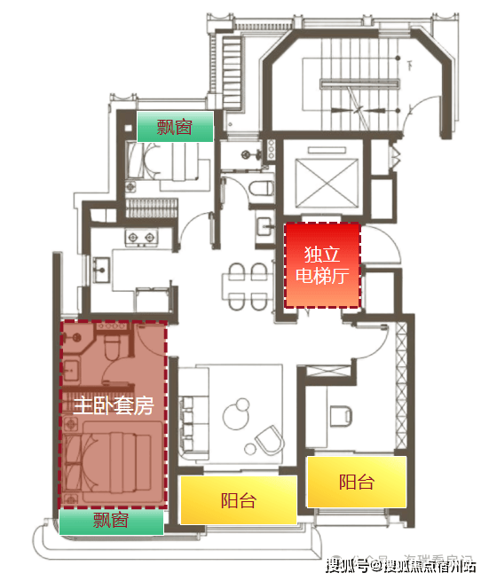 此外,还有少量约100㎡上车户型,同样做到了双阳台,主卧套房,以及一梯一户等核心配置。