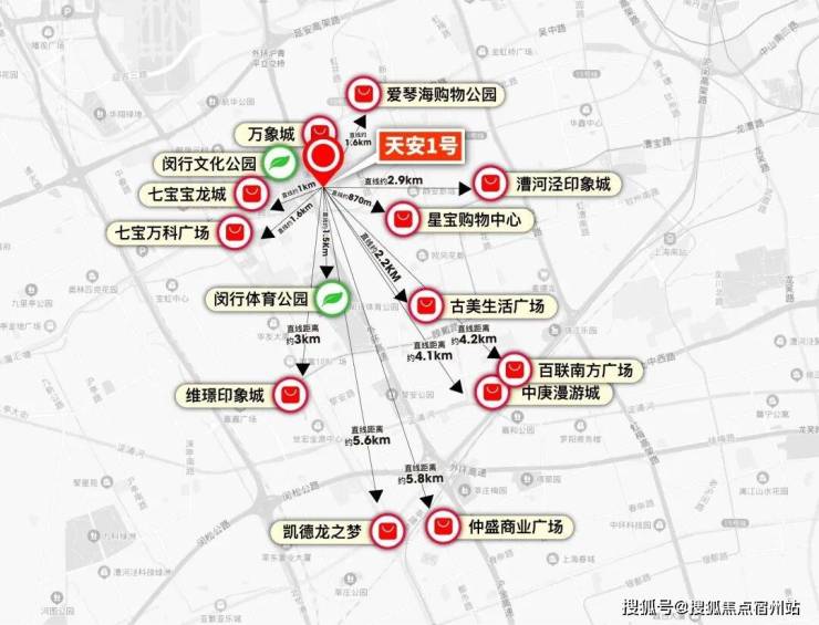 商业方面,光是直线2km范围内就汇聚了 约55万方爱琴海、约53万方万象城、约39万方宝龙城、约14.8万方七宝领展广场 。