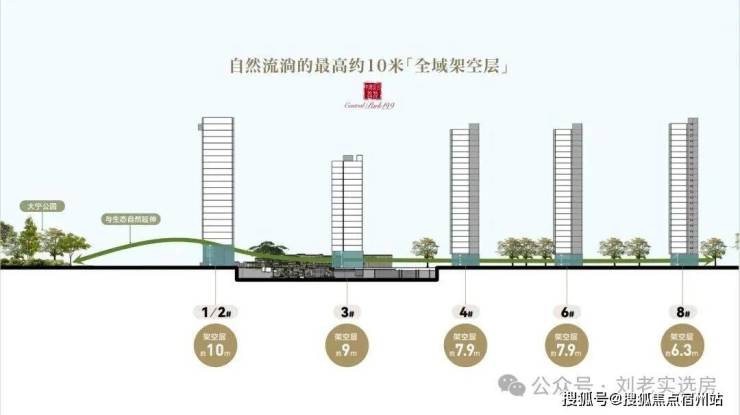 向内,项目更是以令人惊叹的魄力,打造了 约6.3-10米超高层级全域架空 设计。