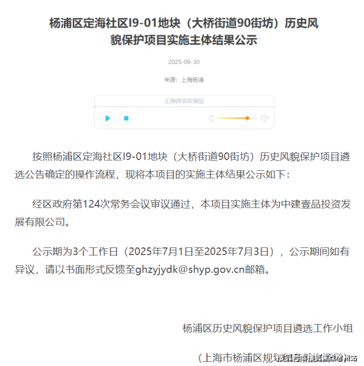 前段时间,杨浦定海社区I9-01地块(大桥街道90街坊)历史风貌保护项目遴选结果公示:中建壹品投资发展有限公司成功拿下杨浦大桥街道90街坊地块。