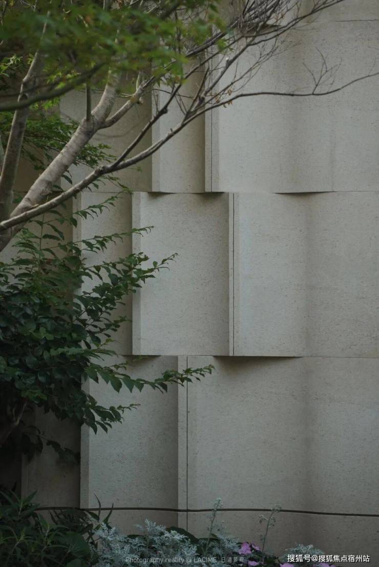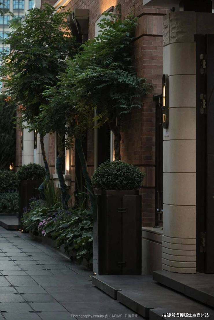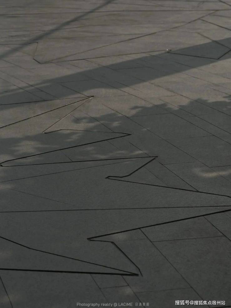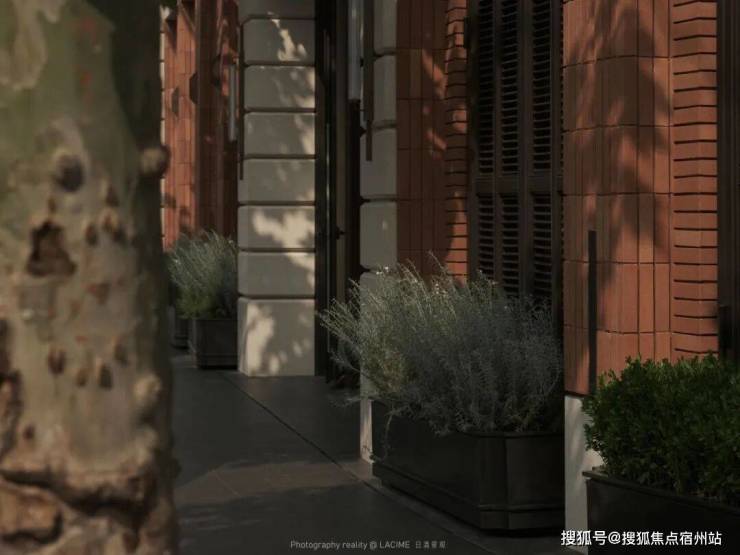 建筑与场地原有的梧桐树已然成为封面的主角,景观将进深不大的前场空间处理成不争不抢且有内容,有质感的存在,利用同一款石材的不同面层构成几何化的梧桐叶,当阳光扑上去,被定格的梧桐树影会被呈现出来,这是精致的上海,这是浪漫的上海。