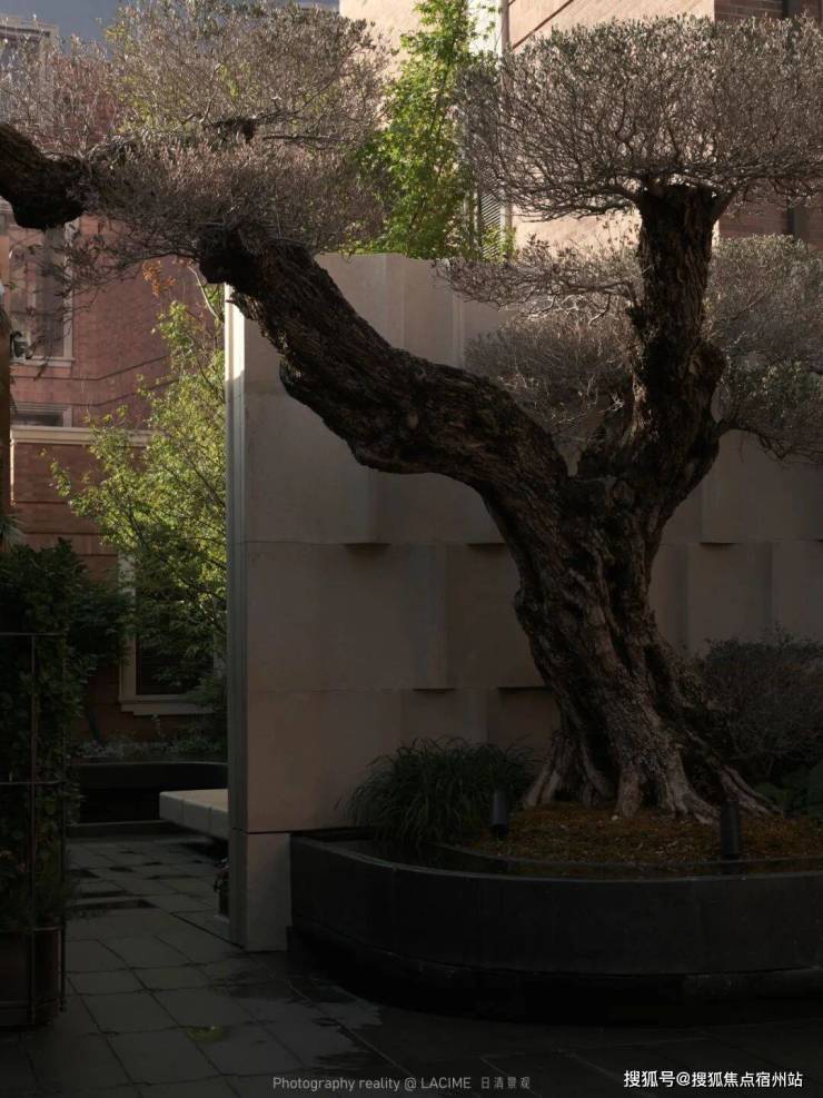 The original wutong tree of the building and the site has become the main character of the cover. The landscape will deal with the front space that is not deep enough and has content and texture. Different surface layers of the same stone will be used to form geometric wutong leaves. When the sun hits, the frozen wutong tree will be presented. This is exquisite Shanghai, this is romantic Shanghai.