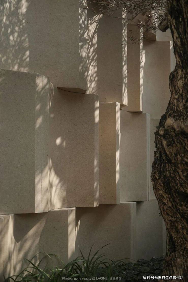 把石材像翻过的书页一样雕刻,变得更加具备立体感,从而感受光的运行,每一天时间的流逝与自然的生命力在空间里的表达,哪怕时间流转,石材斑驳,但光不会,他会刻画这个社区里面的人,每一天的心情与生命的历程。