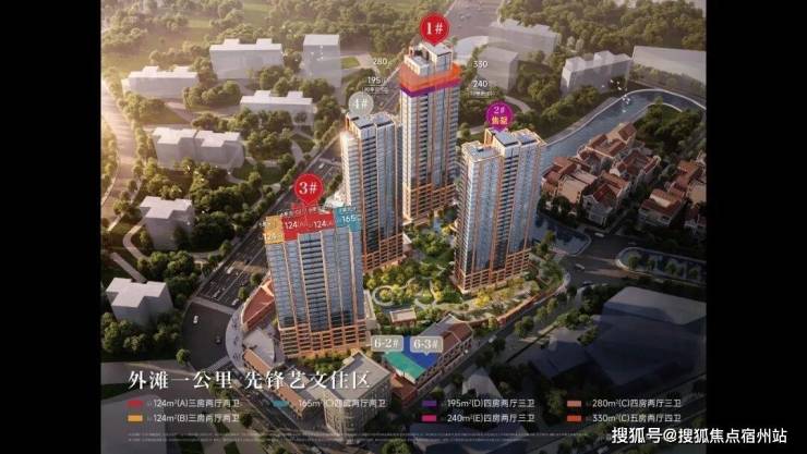 具体来看,1#总高31层,一层架空;2#总高31层,一层架空;4#总高32层,一层架空;3-1#总高24层,一层架空;6为风貌建筑,总高3层,含商业和住宅。在景观设计方面,小区内规划了景观架构、风雨连廊以及下沉式庭院。