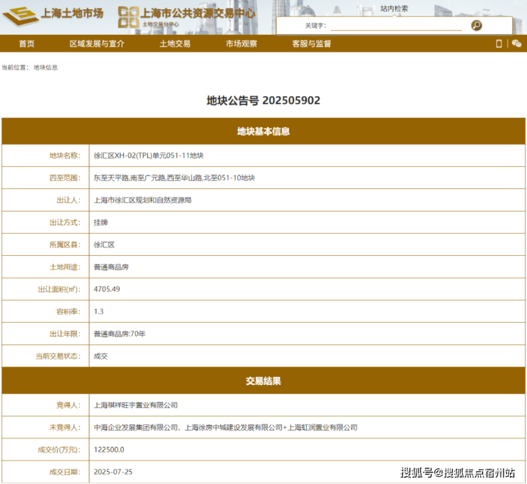 截图来源上海土地市场官网