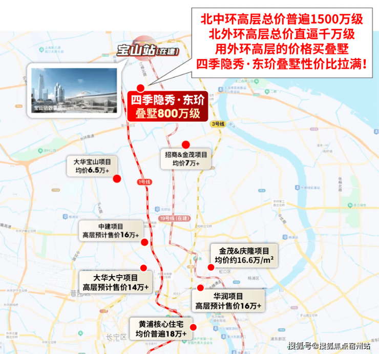 以北上海为例,普陀桃浦叠加项目总价2000万级,且多次触发积分;市中心风貌别墅总价动辄4000万起步!