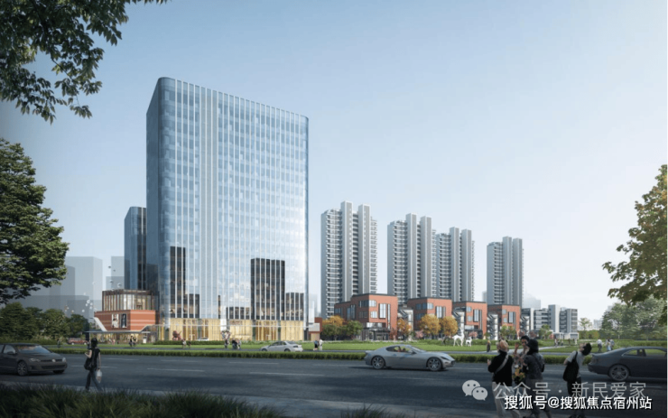 建筑外立面采用“玻璃幕墙+顶部金色格栅塔冠”设计,简约现代又富有质感,轻盈通透又极具辨识度。