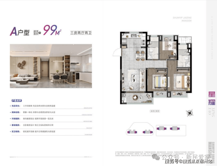 深嘉上府主力户型为建面约88㎡、99㎡品质三房,在户型设计上,建面约88㎡的三房一卫与建面约98㎡三房两卫均以“功能性与成长性”为核心,实现了空间与细节的双重突破。