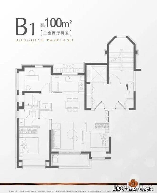 · 建面约100m²三房两厅两卫,空间利用率拉满!