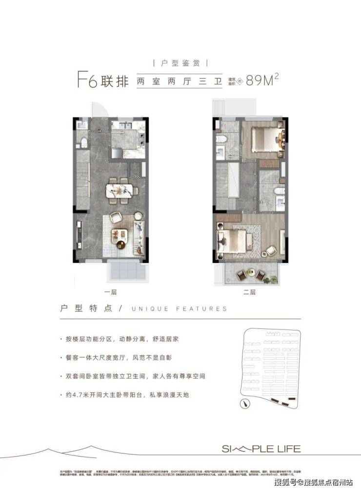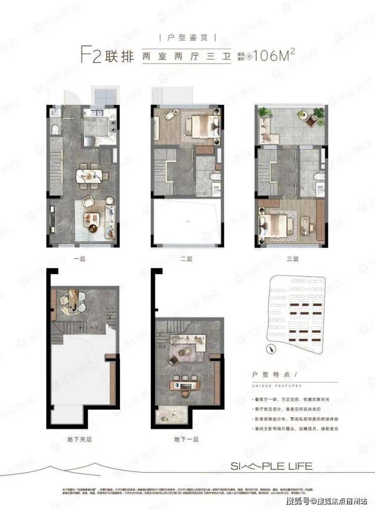 项目合计47幢楼,其中洋房12幢554套,联排33幢301套,项目整体分两批次推出,总计855套。采用人车分流,即保证社区整体设计的美观,又保证业主的安全性,车位有920个,做到1:1的比例。