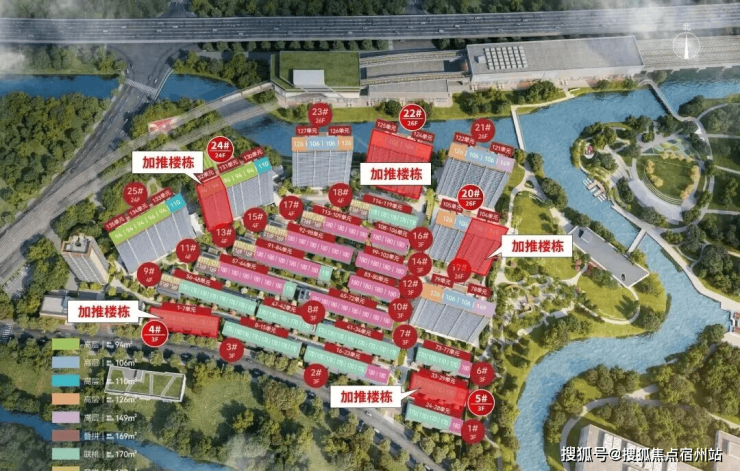 大华望规划 7 幢高层(23-26F,层高 3 米)与 18 幢叠加、联排别墅,总计 908 套,全地下车位 1180 个,车位配比 1:1.3。多元的产品业态,满足不同家庭、不同预算的置业需求。