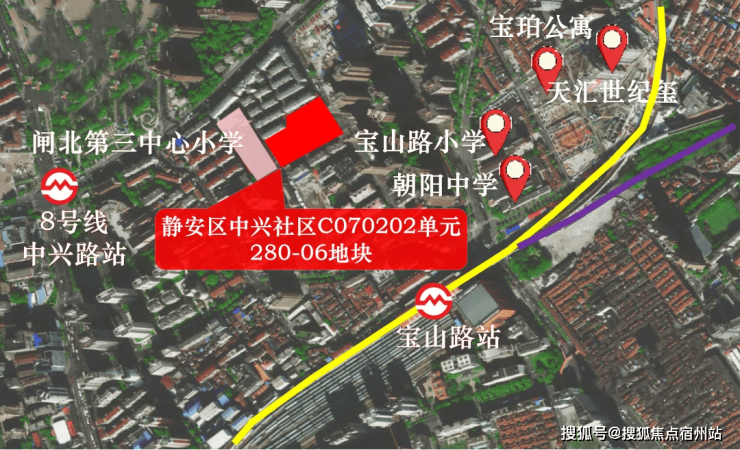地块北侧象山小区、西侧是静安区闸北第三中心小学。