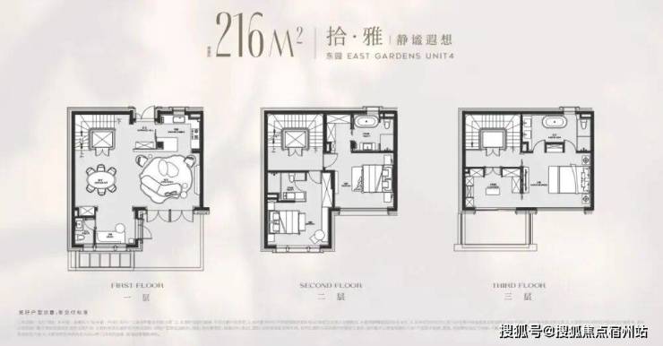 3楼主卧豪华套房可以轻松容纳超大衣帽间、书房、五星级卫浴间、舒适睡房等
