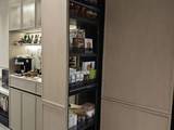 收纳系统是骊住的魔法五金:高柜里有旋转拉篮,再深的东西一转就出来;吊柜有升降拉篮,轻轻一拉,东西就送到手边,彻底不用踮脚爬高。