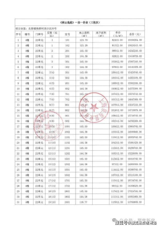 项目一房一价表▼