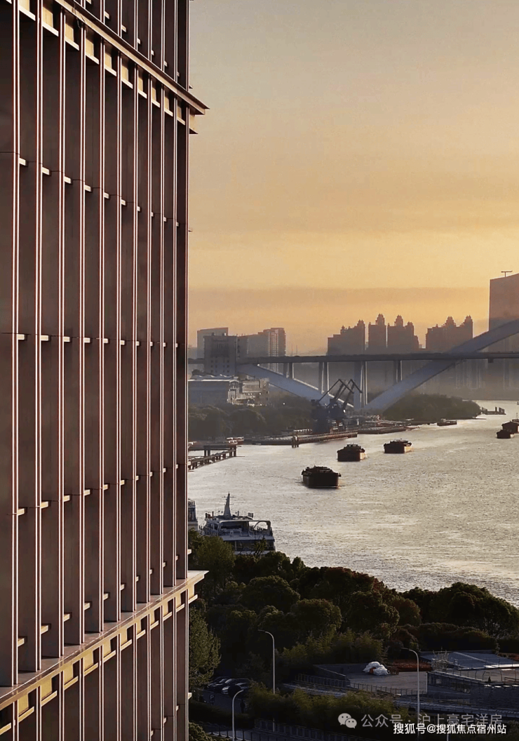 项目外立面设计了 上海首例“开放式铝板设计” ,打造 黄浦江畔地标新名片 !结构外露的模式不仅赋予建筑本身十字框架般的雕塑体形,大框套小框的模式,反衬江景和光线,呈现出 浓烈的建筑美学造诣 ~