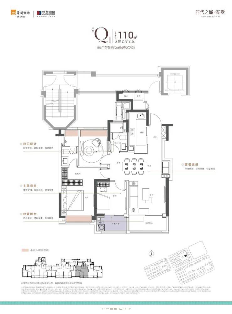 170m²上叠,南向双阳台+南北双露台: