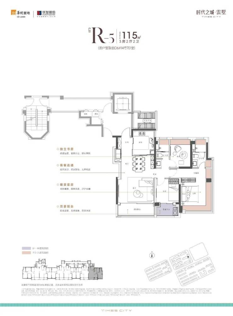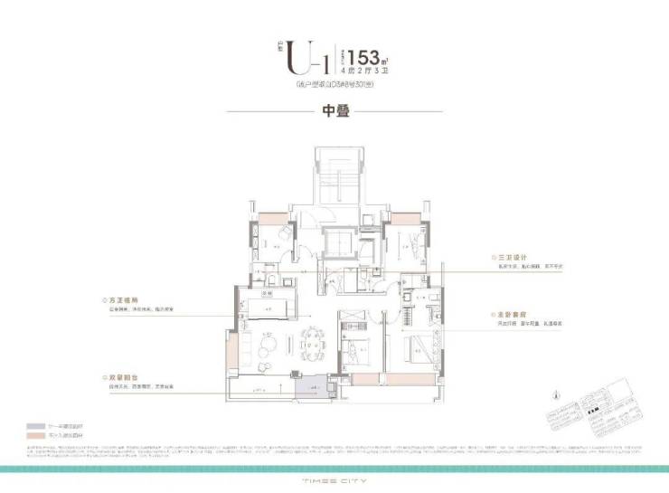 项目的中叠 四开间朝南,超大IMAX的采光面,妥妥市区豪宅大平层的尺度感。