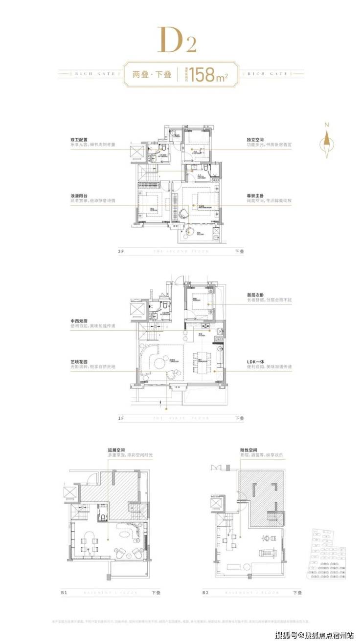 其中,上下叠双层地下室,下叠南花园+北面入户花园;上叠北花园、露台以及坡屋顶空间!