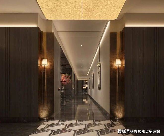 电梯厅融合梵高印象岩板与超白洞石大面积的铺装,彰显出了细腻雅致!