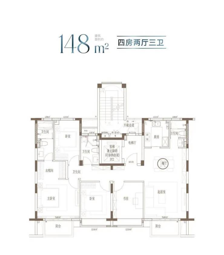 建面约148m²的宽境4房,拓宽空间尺度;大开间、进深短,通透采光;主卧独立卫浴,优雅随心的寝居感受。