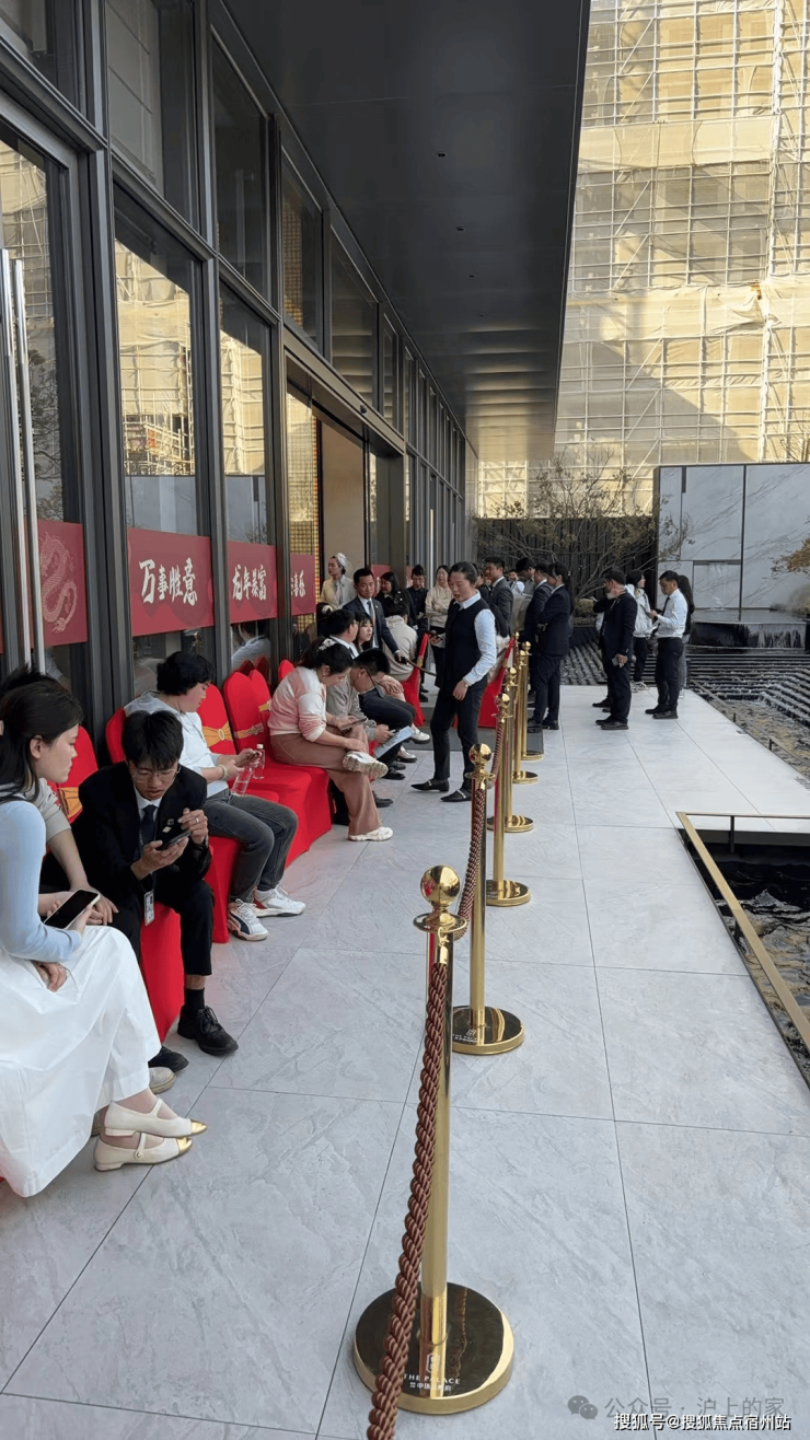 2024年3月,上海楼市暴走,这个项目的售楼处一角朋友圈刷屏了,售楼处挤满了排队看房购房者,里面站不下都在门口坐着排了。