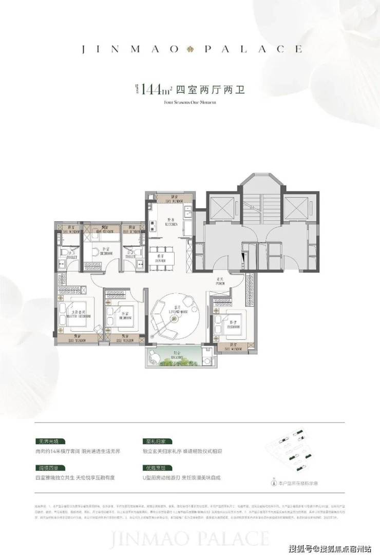 · 建面约144㎡4房:同价格在杨浦只有百平米3房可选。