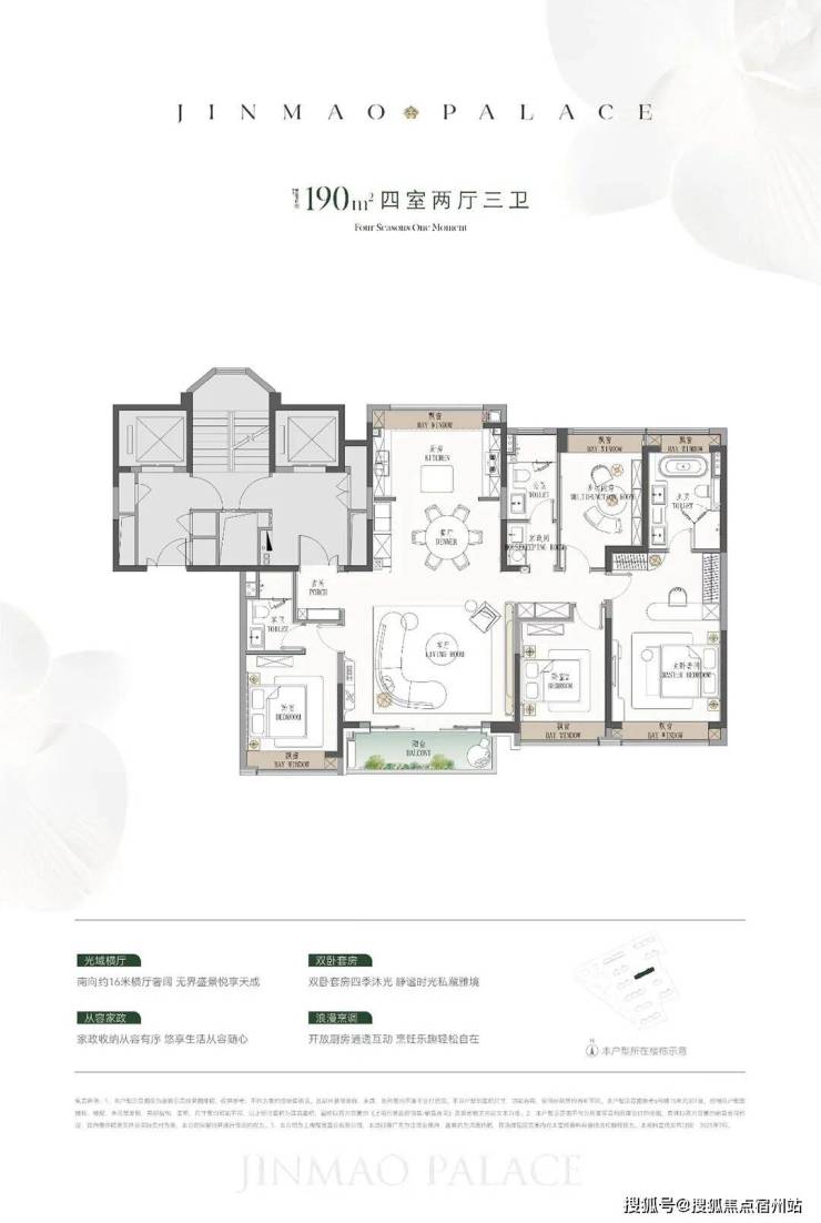 · 建面约190㎡4房:楼王位置的顶奢大平层,同价位段在杨浦只能买到约120㎡3房!