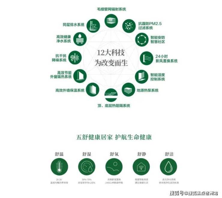 以十二大绿金科技构筑「五舒」健康空间,通过衡温、衡湿、衡氧、衡洁、衡静五大维度,打造全年舒适的家居环境。这一系统以上海地源热泵为核心能源,搭配毛细管网辐射控温和24小时新风置换,实现室内温度恒定在约20-26℃,湿度保持在约30%-70%。