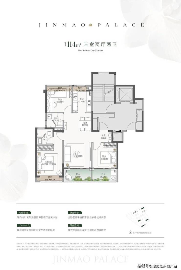 · 建面约114㎡3房:约700万级低总价上车首选。
