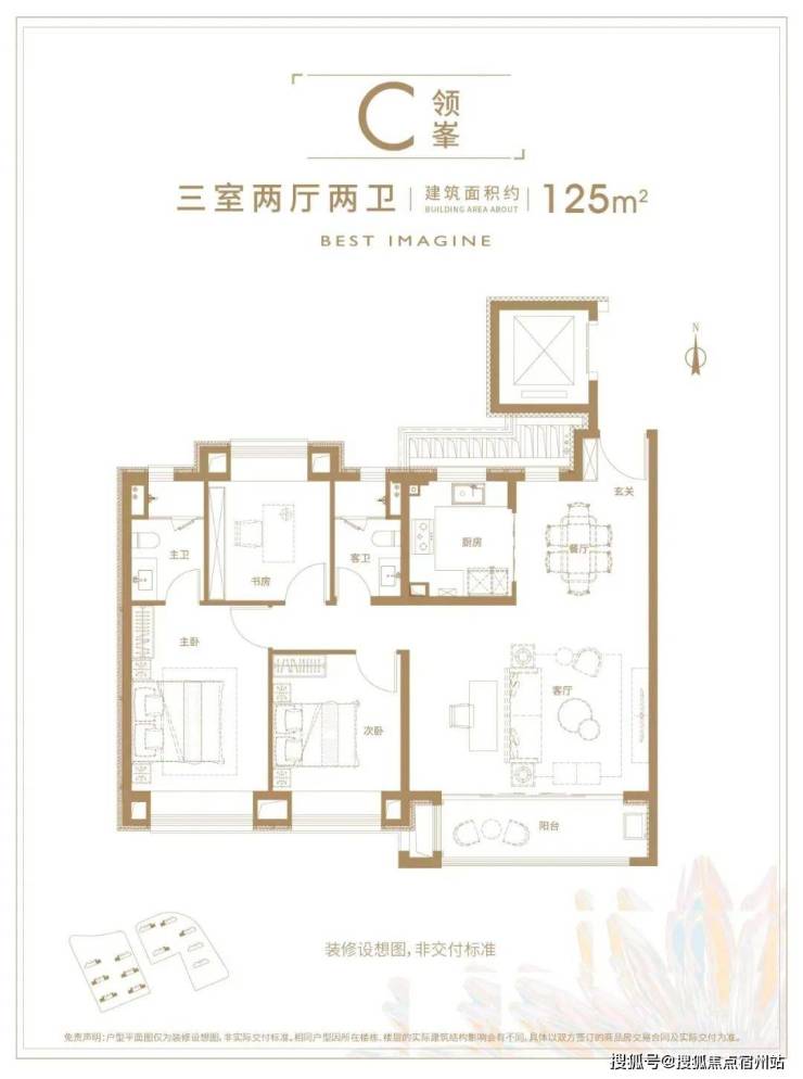 除此之外,项目还有建面约125㎡宽绰三房户型: