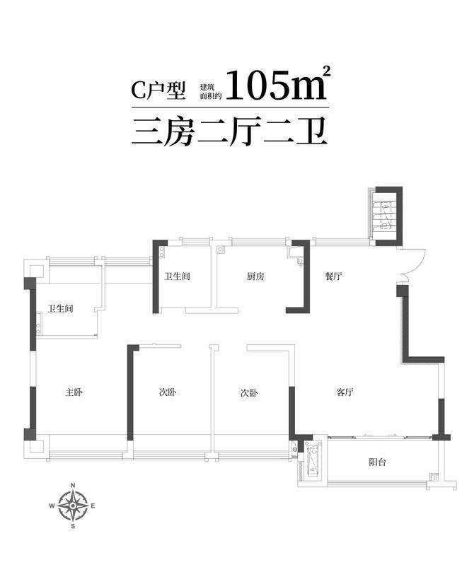 建筑面积约105㎡宽厅三房两卫,四开间朝南,舒适栖居理想☑️☑️翠湖水岸售楼处电话:400 - 8377 - 020☑️☑️