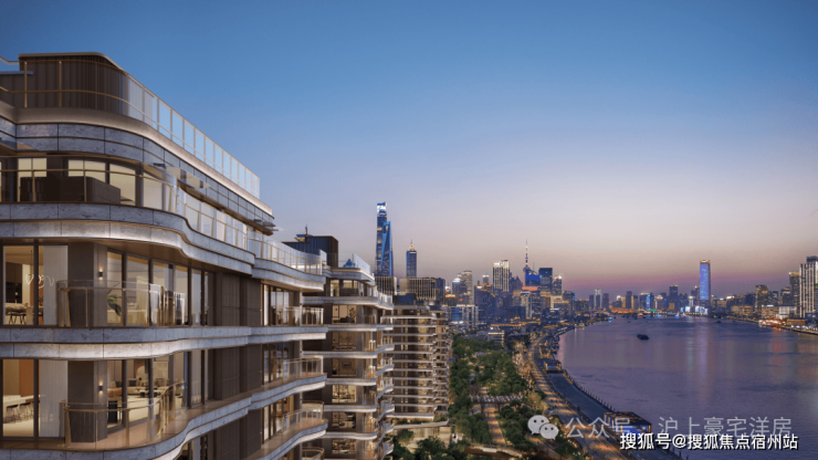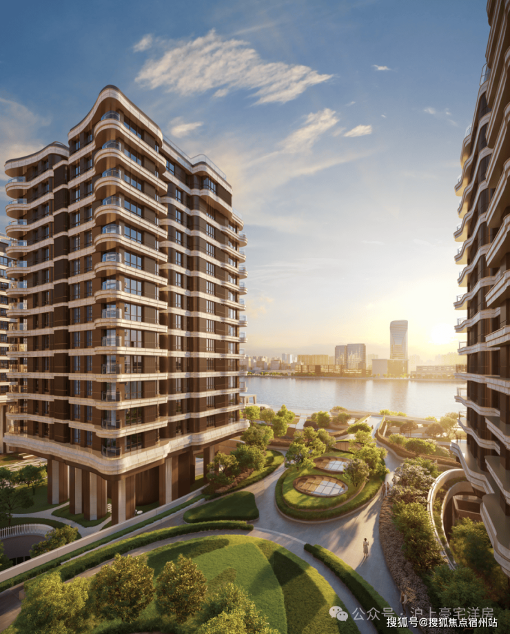 采用香槟金金属铝板 + 进口云纹花岗岩立面,搭配大面积玻璃幕墙与 270° 弧形阳台,现代简约中尽显奢华质感;创新采用巨柱架空结构,将建筑整体抬升 9-22 米,既确保 “户户瞰江” 的平权视野,又创造出丰富的立体公共活动空间,真正实现“还江于民、还岸于民”。