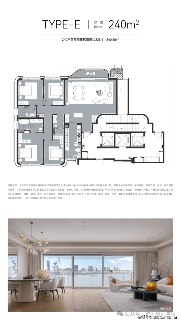 240㎡江景四房:16 米江景面宽搭配约 8.6 米横厅,江景体验拉满;创新采用南向入户设计,开门即见黄浦江波光粼粼的盛景,仪式感十足;主卧面宽 4.3 米,原始套房面积超 30㎡,合并南向次卧后可形成约 50㎡豪华套房(含卧室、书房、步入式衣帽间、五件套卫生间),对标市面 400-500㎡户型;北套房面积约 25㎡,江景视野 + 三件套私卫配置,兼顾家庭成员尊崇需求;通过家政阳台南向开窗实现南北通风,在入门级豪宅中极为罕见。